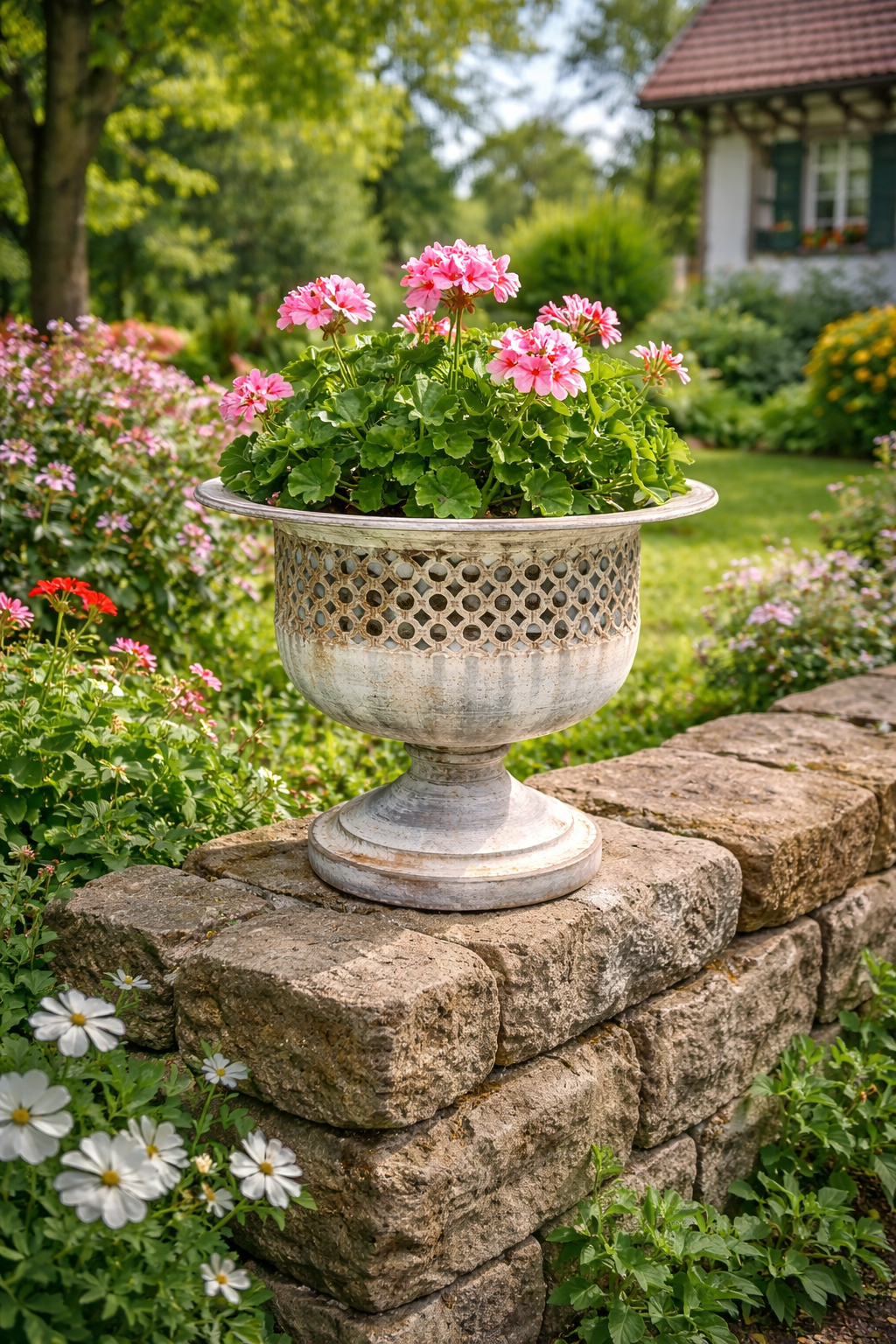 Dieser dekorative Blumenübertopf ist aus Metall, und somit gut für den Innen- + Außenbereich geeignet. Im angesagten Vintage Look mit Patina in Pastellfarben sieht er aus, als wäre er ein Fundstück aus vergangenen Zeiten. Der so enstehende Shabby Chic Charakter verströmt nostalgisches Flair und liegt voll im Trend. Maße: Höhe 25 cm Ø 28 cm