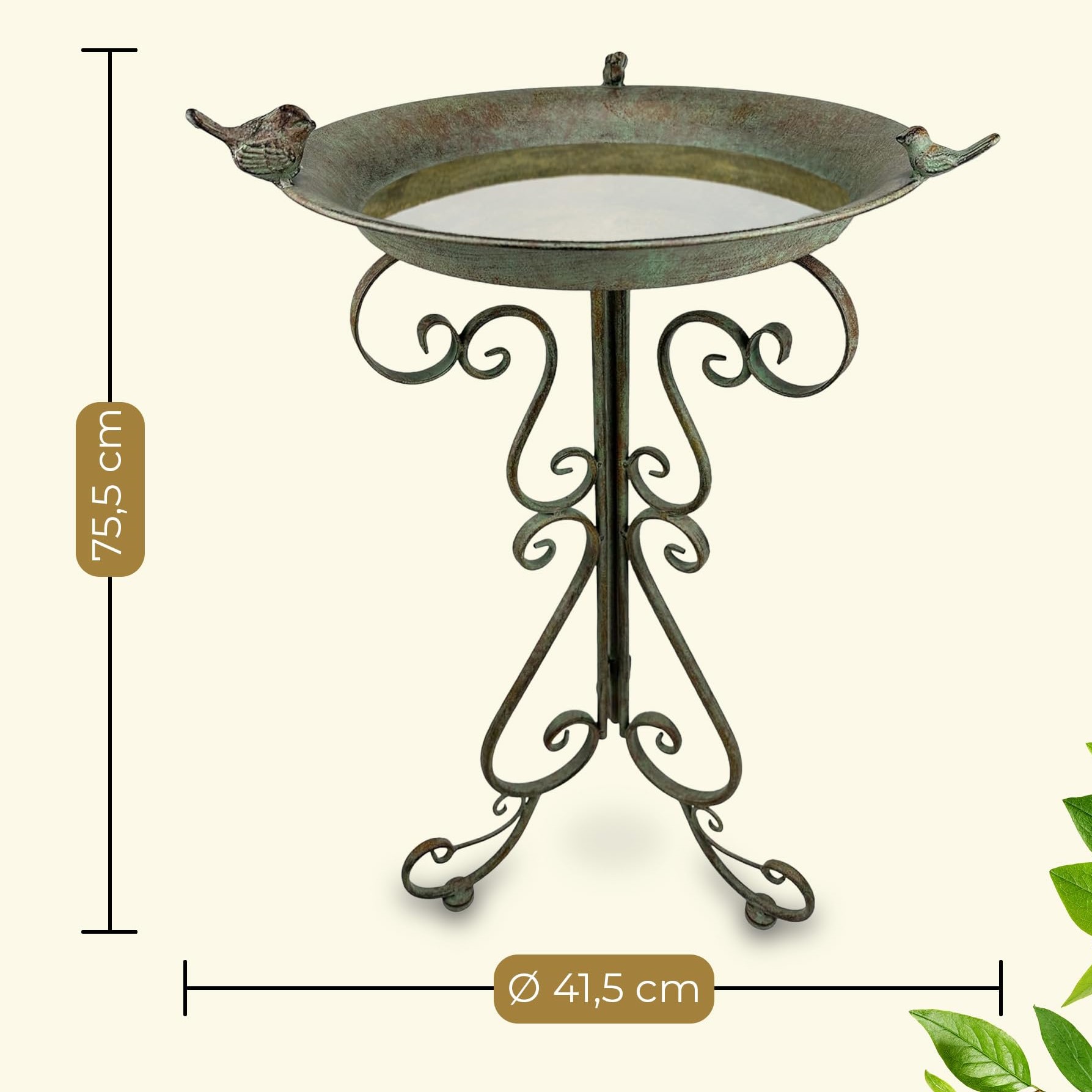 Viele Vogeltränken wirken rein funktional oder verlieren schnell ihren Charme. Die Vogeltränke Leon verbindet romantischen Shabby Chic mit robuster Alltagstauglichkeit. Das Metall sorgt für Standfestigkeit und Langlebigkeit, während die antike Optik deinem Garten einen sanften, nostalgischen Akzent verleiht.